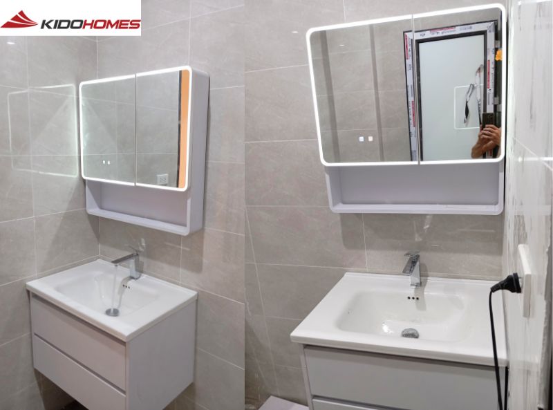 Hoàn thiện lắp đặt 2 bộ tủ chậu và sen tắm cho bác Hạnh – Hoàng Mai, Hà Nội