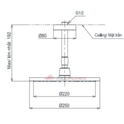 Bản vẽ kỹ thuật của bát sen gắn trần TBW07002A1