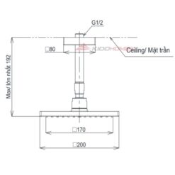 Bản vẽ kỹ thuật của bát sen gắn trần TOTO TBW08001A1