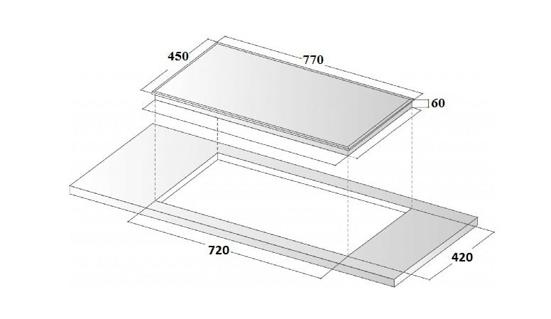 Bản vẽ kĩ thuật Bếp từ 2 vùng nấu Lorca LCI 829 – Made in Spain
