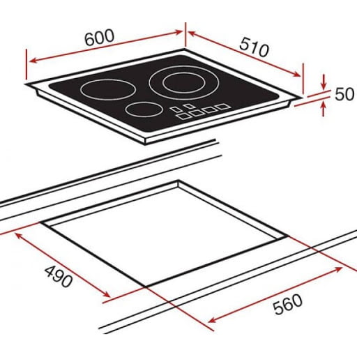- Kích thước bếp: Chiều ngang 600(R) x chiều sâu 510(S) mm