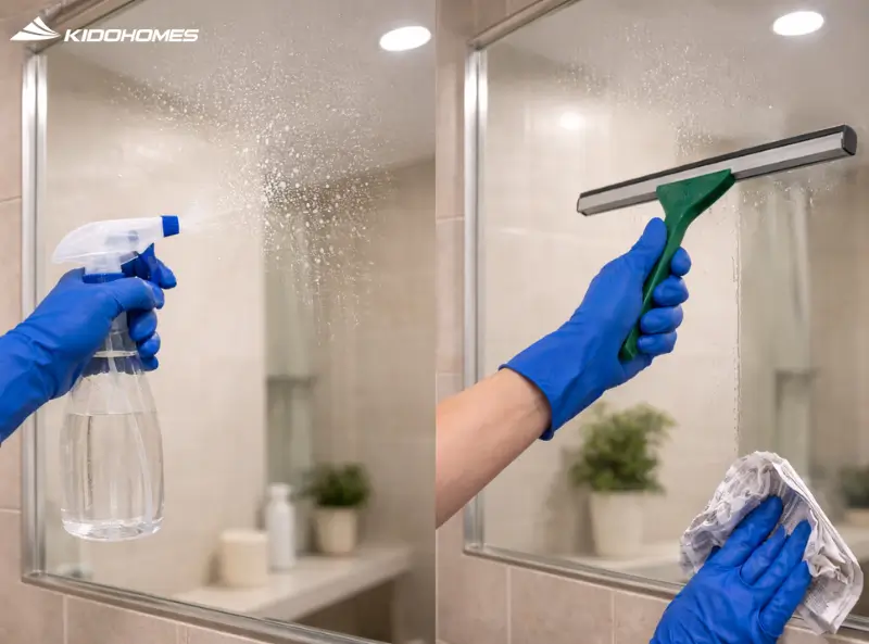 Bước 4: Vệ sinh gương và các bề mặt kính