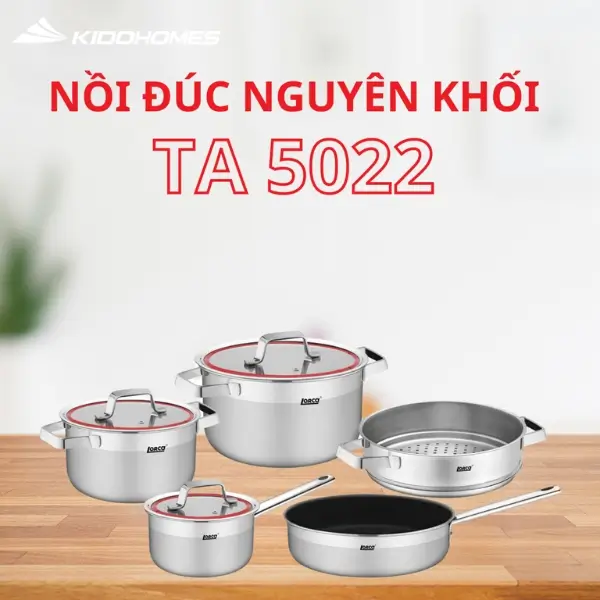 Lorca TA-5022 là bộ nồi inox Triply liền khối cao cấp, nổi bật với khả năng bắt từ 100%, truyền nhiệt đều 3D và độ an toàn tuyệt đối cho sức khỏe. Thiết kế tinh tế, cấu trúc bền bỉ giúp bộ nồi trở thành lựa chọn lý tưởng cho mọi gian bếp hiện đại.