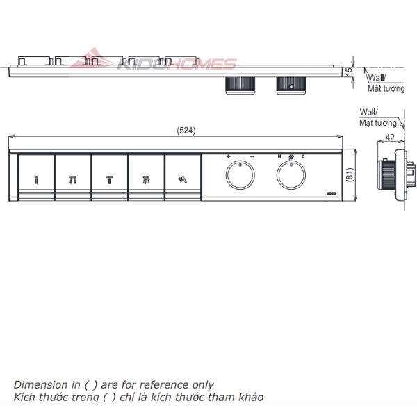 Bản vẽ kỹ thuật của bảng điều khiển sen âm 5 đường nước TOTO TBV11150A/TBN11HC0A