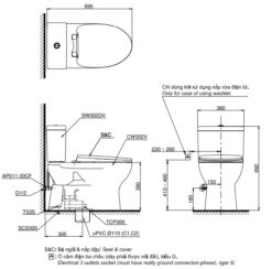 Bản vẽ kỹ thuật của Bồn cầu TOTO 2 khối nắp rửa điện tử CS302DW14#W