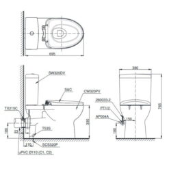 Thông số kĩ thuật của Bồn Cầu 2 Khối Nắp Rửa Điện Tử TOTO CS320PDRW16#W