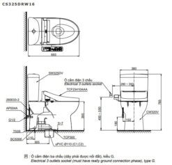 Thông số kĩ thuật của Bồn Cầu 2 Khối Nắp Rửa Điện Tử TOTO CS325DRW16#W