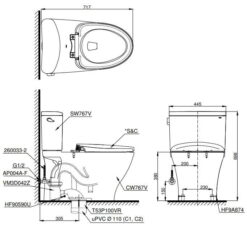 Thông số kĩ thuật của bồn cầu 2 khối TOTO CS767CRW17#XW nắp điện tử
