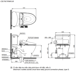 Bàn cầu hai khối TOTO kèm nắp rửa điện tử CS767RW18#XW