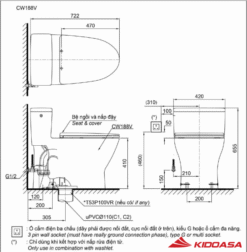 Bản vẽ kỹ thuật bồn cầu 1 khối TOTO MS188VKW7 nắp điện tửTham khảo thêm các sản phẩm bồn cầu tương tự tại đây: