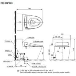 Bản vẽ kỹ thuật của bàn cầu thông minh TOTO MS625DW25#XW