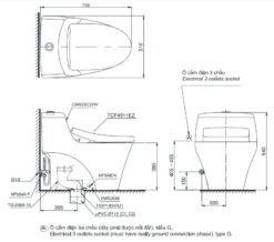 Bản vẽ kĩ thuật của Bồn Cầu 1 Khối Nắp Rửa Điện Tử TOTO MS823CDRW12#XW