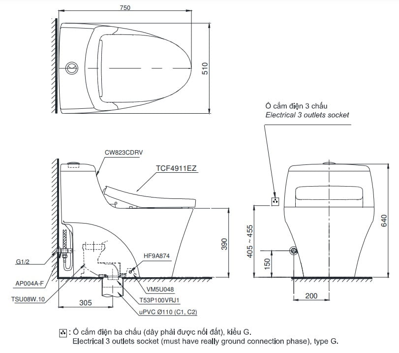 - Nắp rửa điện tử: TCF4911EZ – Xuất xứ: Malaysia