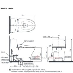 Bản vẽ kỹ thuật của bàn cầu 1 TOTO MS885CDW23#XW khối kèm nắp rửa điện tử TCF47360GAA