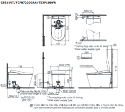 Bản vẽ kỹ thuật của bàn cầu thông minh TOTO NEOREST LS CS911VT/TCF87220GAA/T53P100VR
