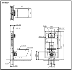 Bản vẽ kỹ thuật bàn cầu treo tường CW522A/WH172A/TC512A/MB171M#SS