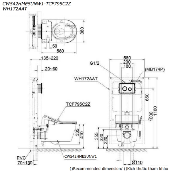 Bàn cầu treo tường nắp thông minh TOTO CW542HME5UNW1/TCF795C2Z/WH172AAT/MB175M#SS