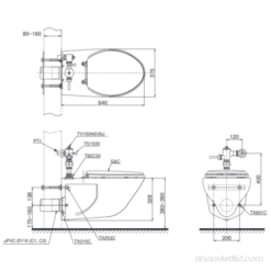 Bản vẽ kỹ thuật bồn cầu CW550#XW/TC393VS#W/HTS153S/TV150NSV6J