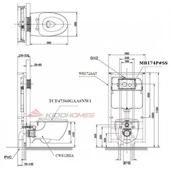 Bản vẽ kỹ thuật của bàn cầu treo tường kết hợp nắp rửa điện tử TOTO CW812REA /TCF47360GAA/ WH172AAT/ TCA546 /MB174P#SS