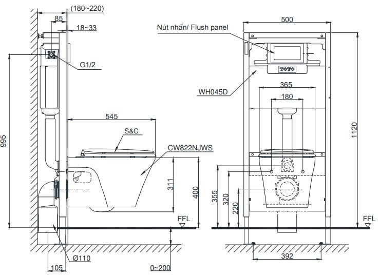 - Mã sản phẩm: CW822RA (Indonesia), nắp đóng êm TC385VS (Việt Nam)