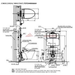 Bản vẽ kỹ thuật của bàn cầu treo tường kèm nắp rửa điện tử CW822REA#W/TCF24460AAA#NW1