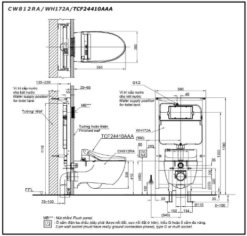 Bản vẽ kỹ thuật bàn cầu treo tường LP CW812RA/WH172A/TCF24410AAA/MB174P#SS