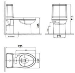 - Loại bồn cầu: Bàn cầu 1 khối