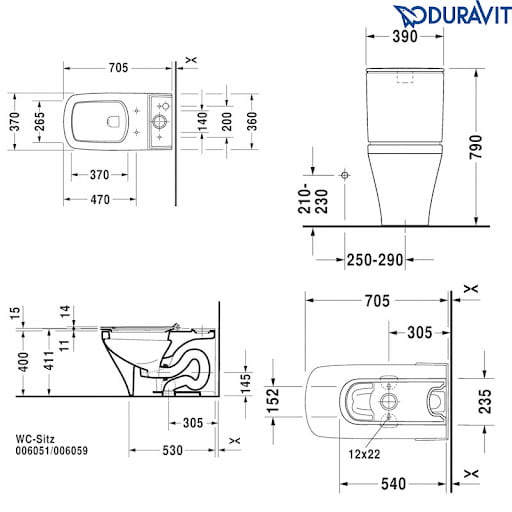 Bản vẽ kỹ thuật bồn cầu DURAVIT DuraStyle 216001