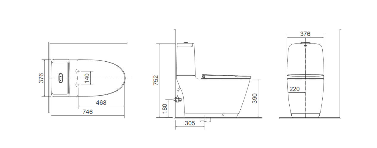 Bản vẽ kỹ thuật bồn cầu 2 khối INAX AC-832VN