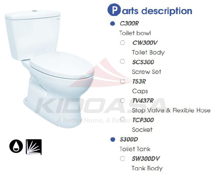 Bồn cầu 2 khối TOTO CS300DRE2#W – Nắp rửa lạnh