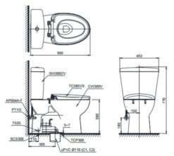 Bản vẽ kỹ thuật bồn cầu TOTO CS300DRT10#W
