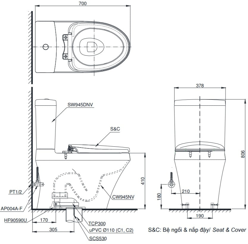 Bồn cầu TOTO CS948DT2#XW (CS948DT2) – Nắp êm 2 khối