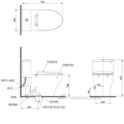 Bản vẽ kỹ thuật của bàn cầu một khối TOTO MS857DT2 kèm nắp đóng êm TC393VS