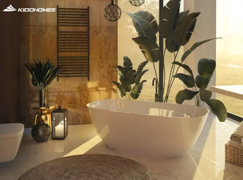 - Trung tâm không gian: Đặt bồn tắm ở giữa phòng nếu diện tích cho phép, biến nó thành tiêu điểm thu hút mọi ánh nhìn.