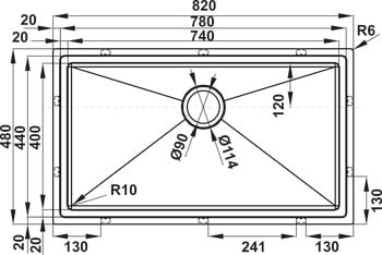 Bản vẽ kĩ thuật Chậu rửa bát HAFELE HS21-SSN1S90
