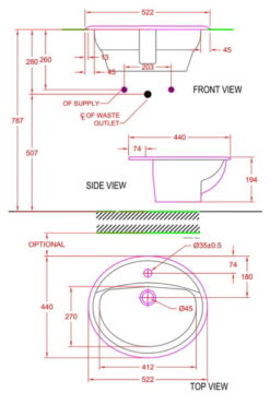 Bản vẽ kỹ thuật của chậu rửa mặt American standard VF-0476