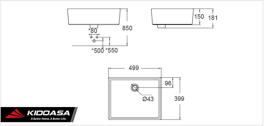 | Kích thước | : | W399 x L499 x H150 mm |