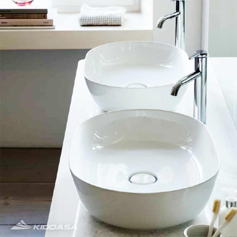 - Chậu được thiết kế đặt bàn kết hợp với vòi lắp trên bàn đá/ âm tường mang đến sự hiện đại, thẩm mỹ.