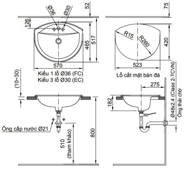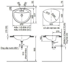 Bản vẽ kỹ thuật chậu rửa mặt Inax AL-2396V