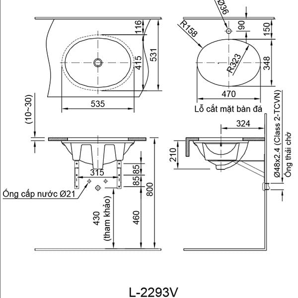 Chậu rửa mặt INAX L-2293V – Đặt bàn