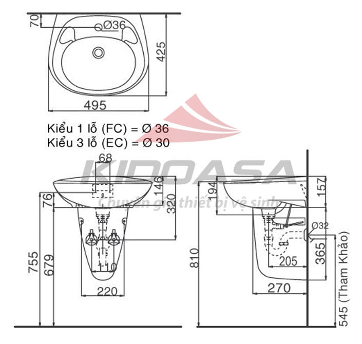 Bản vẽ kỹ thuật Chậu rửa mặt INAX L-284V/L-284VC