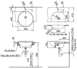 - Kích thước (mm) :440 x 440 x 115 (DxRxC)Loại chậu : Chậu đặt trên bàn