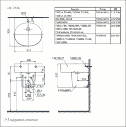 Bản vẽ kỹ thuật Chậu rửa mặt treo tường TOTO LHT766CR
