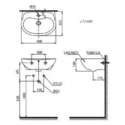 Bản vẽ kỹ thuật chậu Lavabo treo tường LT240C