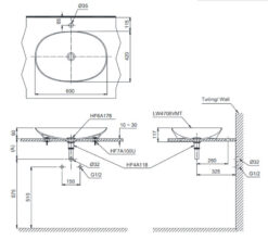 Bản vẽ kỹ thuật chậu rửa mặt lavabo đặt bàn TOTO LT4706MTCMW