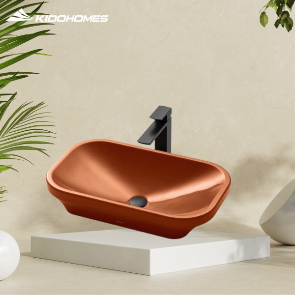 - Thiết Kế Hiện Đại – Tôn Vinh Thẩm Mỹ. Kiểu dáng chữ nhật đặt nổi mang phong cách hiện đại, dễ kết hợp với bàn đá, bàn gỗ hoặc nội thất cao cấp. Đường nét tối giản nhưng sang trọng, nâng tầm thẩm mỹ cho phòng tắm.