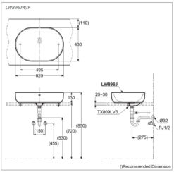 Bản vẽ kỹ thuật chậu Lavabo LW896JW/F