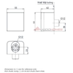 Bản vẽ kỹ thuật của gác sen kèm cút nối tường TOTO TBW160N0A