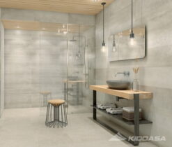 - Mang thiết kế đương đại với mặt xi măng, tạo cảm giác sang trọng cho không gian. Đặc biệt với màu trắng be, sản phẩm giúp mở rộng không gian và không hề kén nội thất.