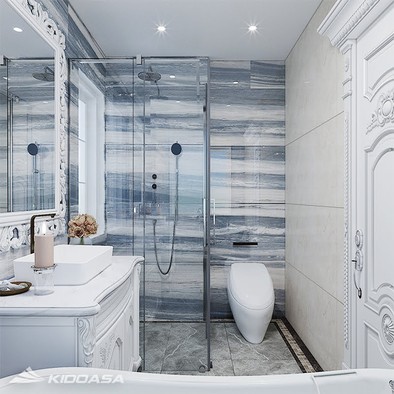 - Màu sắc nổi bật, tính thẩm mỹ cao: Sản phẩm có vân đá màu xanh nổi bật, thích hợp dùng để trang trí không gian phòng tắm, phòng bếp,…